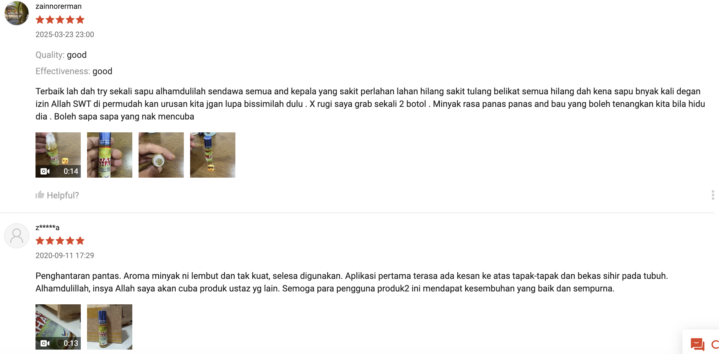 Testimoni Minyak Angin Bidara GaharuSaya kongsikan satu lagi maklum balas yang diambil daripada ruangan review rasmi Shopee bagi produk Minyak Bidara Gaharu.Review ini bertarikh 11 September 2020 dan diberi penilaian 5 bintang.Maklumat ini saya paparkan semula sebagai dokumentasi pengalaman pengguna sebenar.Maklumat Ringkas ReviewNama pengguna Shopee: z*****a Tarikh: 11 September 2020 Penilaian: 5 bintangIsi Penting Yang DikongsikanPengguna menyatakan beberapa perkara berikut:• Penghantaran pantas • Aroma minyak lembut dan tidak terlalu kuat • Selesa digunakan • Aplikasi pertama memberi kesan pada tapak dan bahagian badan yang bermasalahBeliau turut menyatakan hasrat untuk mencuba produk lain pada masa akan datang.Petikan Ringkas Daripada Review Shopee“Penghantaran pantas. Aroma minyak ni lembut dan tak kuat, selesa digunakan. Aplikasi pertama terasa ada kesan ke atas tapak dan bekas sihir pada tubuh.”Review 2Tarikh 23 Mac 2025Penilaian 5 BintangQuality goodEffectiveness goodPengguna menyatakan beliau mengalami sakit kepala dan sakit tulang belikat sebelum penggunaan.Selepas sapuan minyak angin bidara gaharu, beliau memaklumkan:• Berlaku sendawa• Rasa panas pada minyak• Bau memberi rasa tenang• Sakit kepala beransur kurang• Sakit tulang belikat semakin legaBeliau juga membeli dua botol selepas mencuba.Daripada maklum balas ini, jelas terdapat respon badan seperti rasa panas dan sendawa selepas sapuan. Ini adalah pengalaman individu yang dikongsikan secara terbuka di Shopee.Apa Yang Boleh Dinilai Daripada Review Minyak Angin Bidara Gaharu IniBerdasarkan dua review berbeza tahun, saya rumuskan tiga perkara utama:• Bau minyak lembut dan tidak terlalu menyengat• Ada respon fizikal selepas sapuan• Pengguna membuat pembelian semulaNamun perlu difahami, setiap individu berbeza dari segi keadaan badan dan tahap keselesaan.Penjelasan PentingPerkongsian ini adalah dokumentasi review minyak angin bidara gaharu daripada Shopee. Ia adalah pengalaman pengguna dan bukan jaminan hasil yang sama untuk semua orang.Minyak ini digunakan sebagai ikhtiar sokongan. Ia bukan rawatan perubatan dan tidak menggantikan nasihat pakar kesihatan.Ulasan SayaDaripada review ini, saya lihat dua perkara utama.Pertama, kepuasan dari segi penghantaran dan kualiti bau. Ini penting kerana tidak semua pengguna selesa dengan minyak beraroma kuat.Kedua, respon awal selepas aplikasi pertama. Pengguna menyatakan sudah terasa kesan pada bahagian tertentu badan.Ini adalah pengalaman individu berdasarkan review yang dipaparkan di Shopee. Setiap orang mempunyai keadaan dan tindak balas yang berbeza.Minyak Bidara Gaharu digunakan sebagai ikhtiar sokongan. Ia bukan rawatan perubatan dan tidak menggantikan nasihat pakar kesihatan.Pandangan sayaSaya akan terus kumpulkan dan dokumentasikan review sebenar daripada Shopee supaya pembaca boleh melihat sendiri maklum balas pengguna dari tahun ke tahun.Untuk maklumat lanjut mengenai Minyak Bidara Gaharu dan cara penggunaan, rujuk halaman rasmi di bidaraspecialist.com.Soalan Lazim Tentang Minyak Angin Bidara GaharuBerapa lama perlu guna sebelum nampak kesan?Kesan berbeza ikut keadaan badan. Berdasarkan pengalaman pengguna, ada yang rasa perubahan selepas beberapa kali sapuan dalam beberapa hari. Untuk kes lebih lama, penggunaan konsisten 7 hingga 14 hari lebih sesuai.Rasa panas itu normal ke?Ya. Rasa panas sederhana memang ciri minyak angin yang berfungsi untuk merangsang kawasan sapuan. Jika terlalu panas atau tidak selesa, kurangkan kuantiti sapuan.Boleh sapu pada bahagian mana?Kawasan biasa disapu:Sendi yang sengalBahagian belakang dan belikatDahi untuk sakit kepala ringanTapak kaki sebelum tidurElakkan kawasan luka terbuka dan mata.Sesuai untuk siapa?Sesuai untuk:Individu yang kerap alami sakit sendi ringanMereka yang mudah tegang dan stresMereka yang mahu ikhtiar tambahan secara luaranTidak menggantikan rawatan doktor jika ada masalah serius.Perlu guna berapa kerap sehari?Cadangan umum: 2 hingga 3 kali sehari pada kawasan bermasalah. Untuk tapak kaki, cukup sekali sebelum tidur.Adakah ia berkesan untuk semua orang?Tindak balas badan berbeza antara individu. Ada yang rasa cepat lega, ada yang perlukan masa lebih panjang. Faktor gaya hidup dan tahap masalah juga mempengaruhi hasil. 0 Reviews Write a Review Submit Review